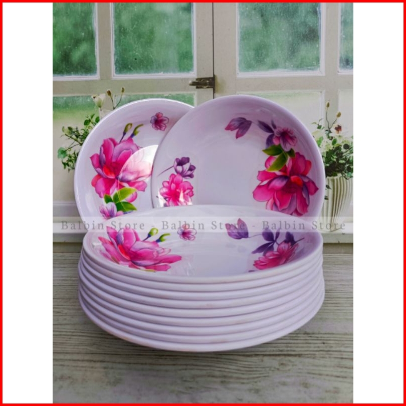 Piring Melamine G1090 Cekung Uk 9 Motif Violet Ungu Food Grade