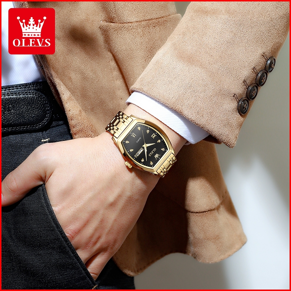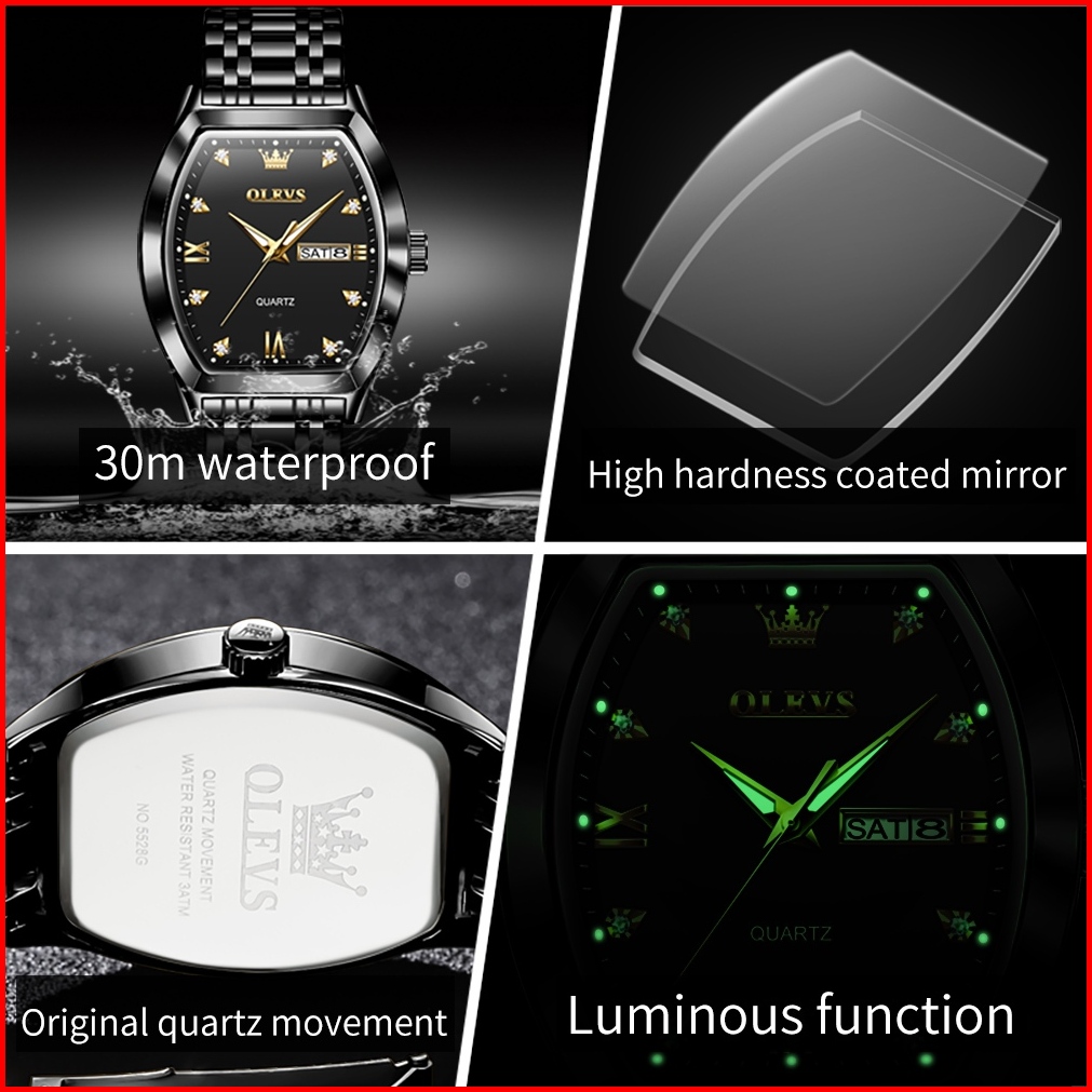 Olevs Jam Tangan Pria Anti Air Original Rantai Keren Terbaru Mewah Hitam Putih Luxury Stainless Steel Watch Men Model 55