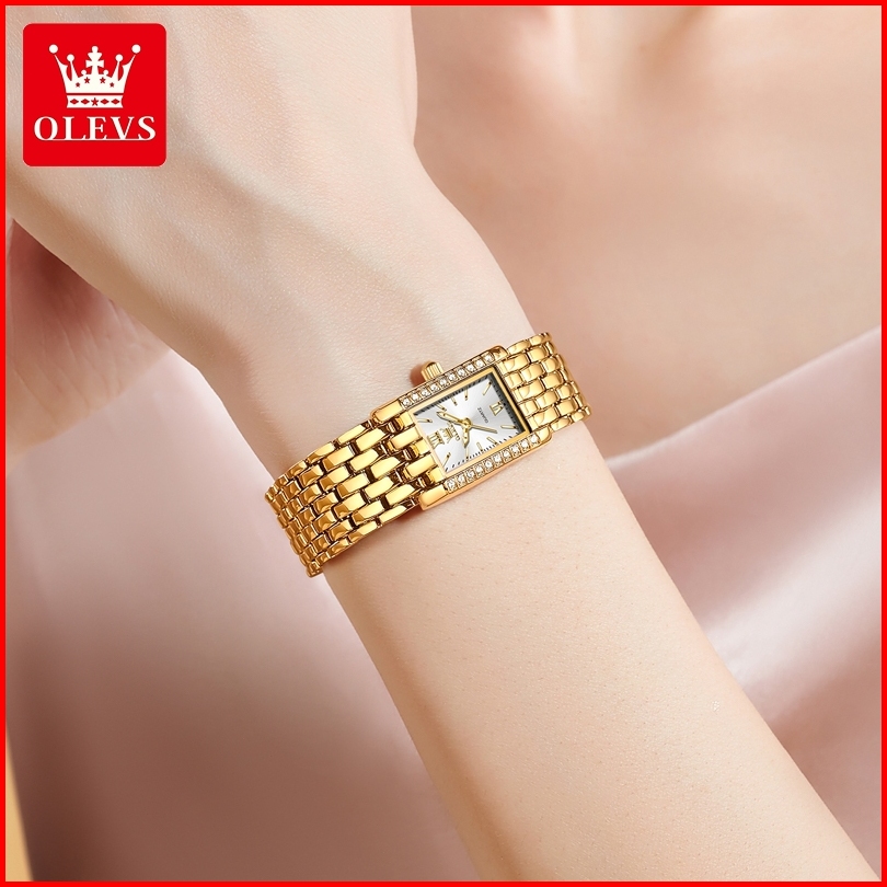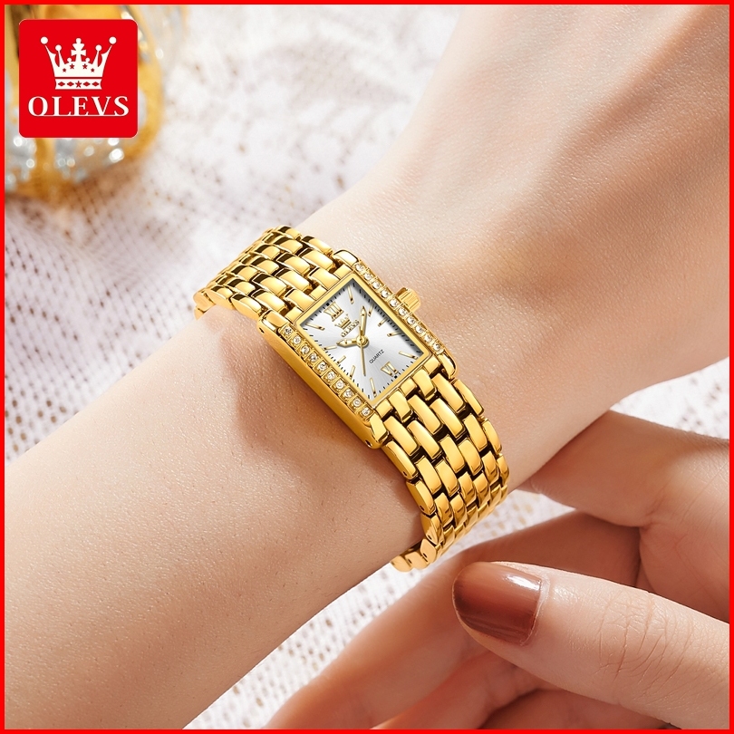 Olevs Jam Tangan Wanita Tahan Air Mewah Berlian Persegi Kecil Indah Women Watch Modle 3700
