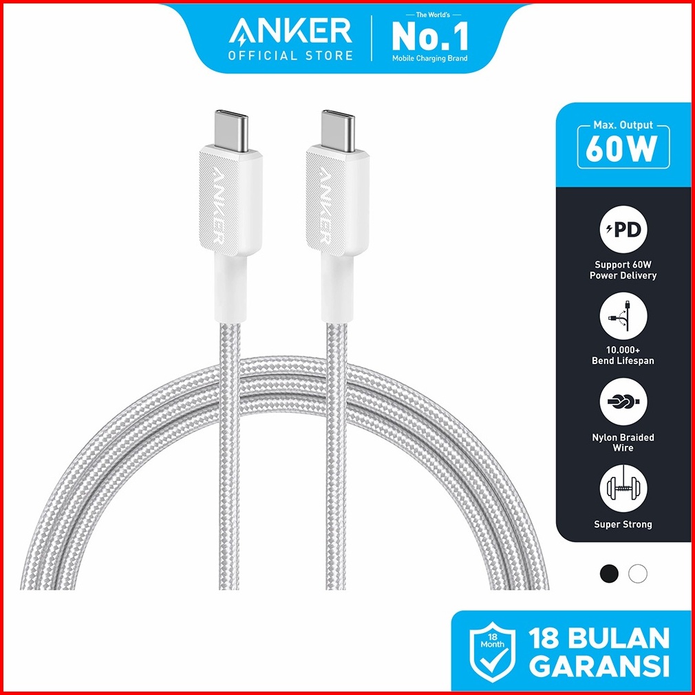 Kabel Charger Anker 322 Usb-c To Usb-c Cable 6ft Braided - A81f6