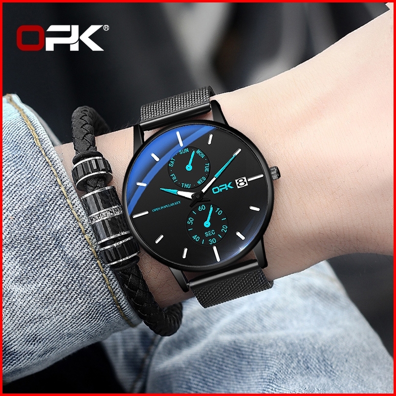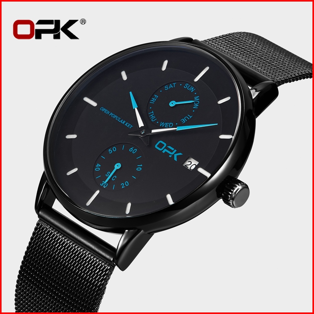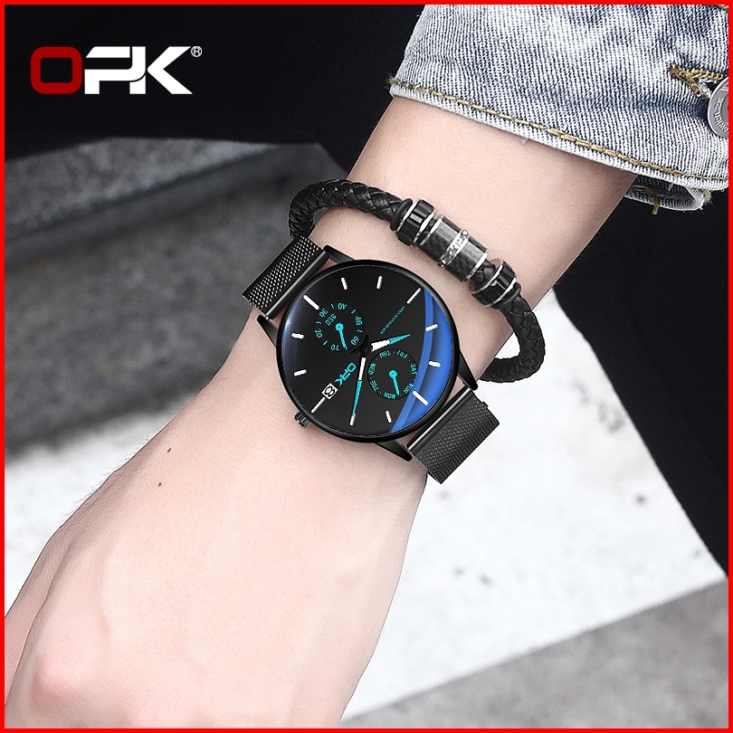 Opk Jam Tangan Pria Anti Air Original 100 Tipis Fashion Aesthetic Hitam Arloji Pria Quartz Watch Men 8116