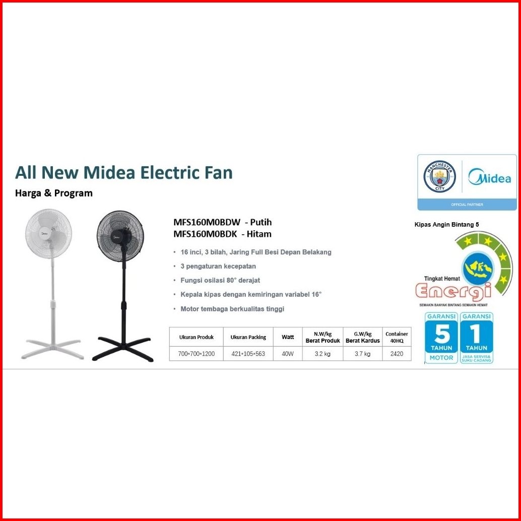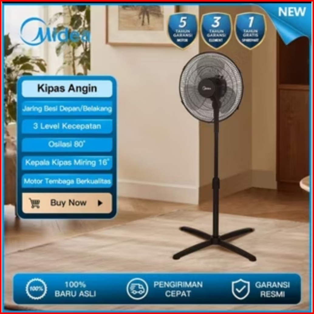 Midea Mfs160m0bdw Bdk Kipas Angin Stand Fan 16 Inch 40 Watt . Baru Bergaransi