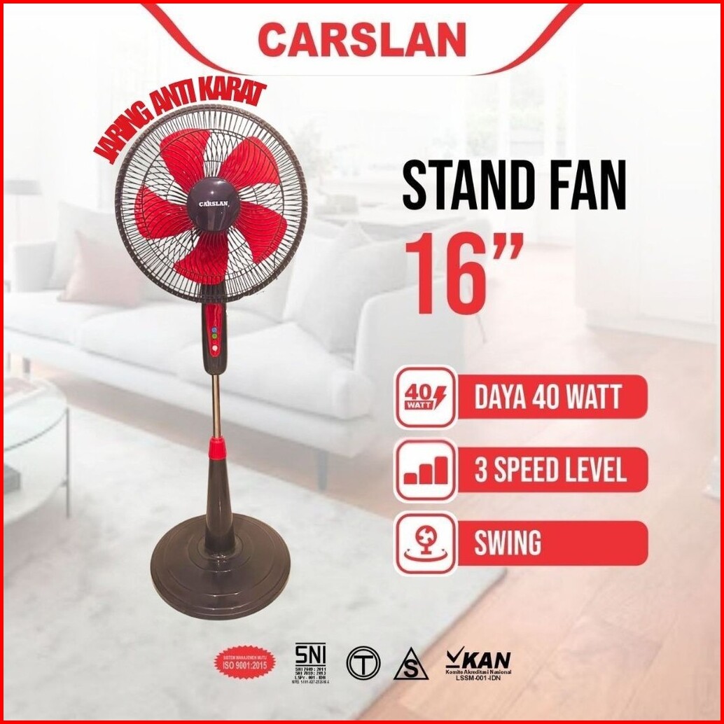 Kipas Angin Berdiri Carslan 16inch 40watt 3 Speed Hembusan Angin Kencang