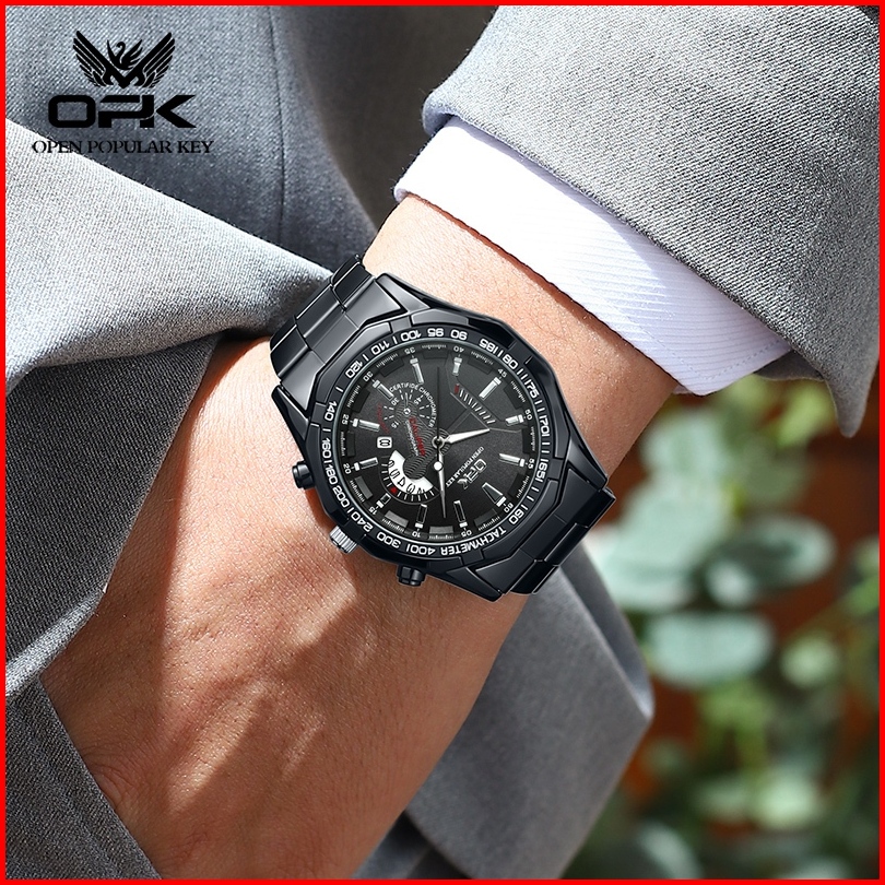 Opk Jam Tangan Pria Original Anti Air Analog Keren Tahan Bisnis Kuarsa Asli New Arrivel Model Terbar Hitam Model 8108