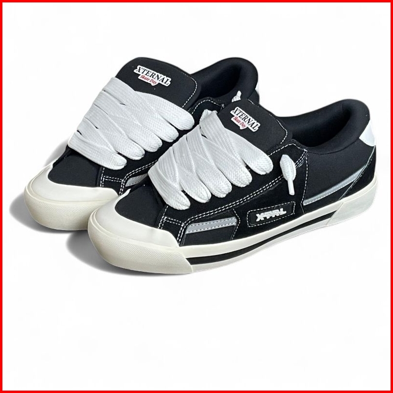 Xternalstepsure - Sepatu Fat Shoes Skateday Gemuk Reflective Black White Sneaker Pria Wanita Suede