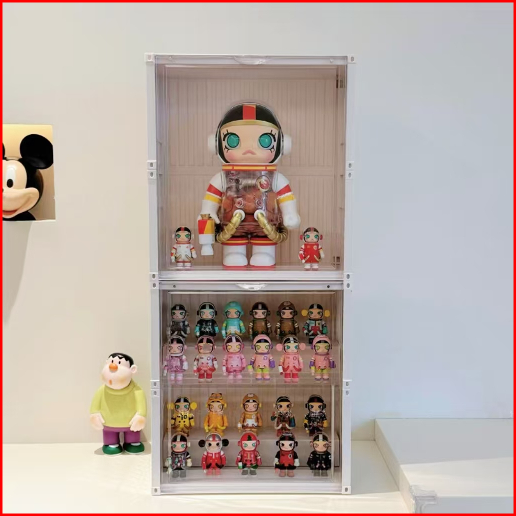 99khome Rak Display Box Pop Mart Rak Pajangan Action Figure Dengan Lampu Kotak Display Putih K1122
