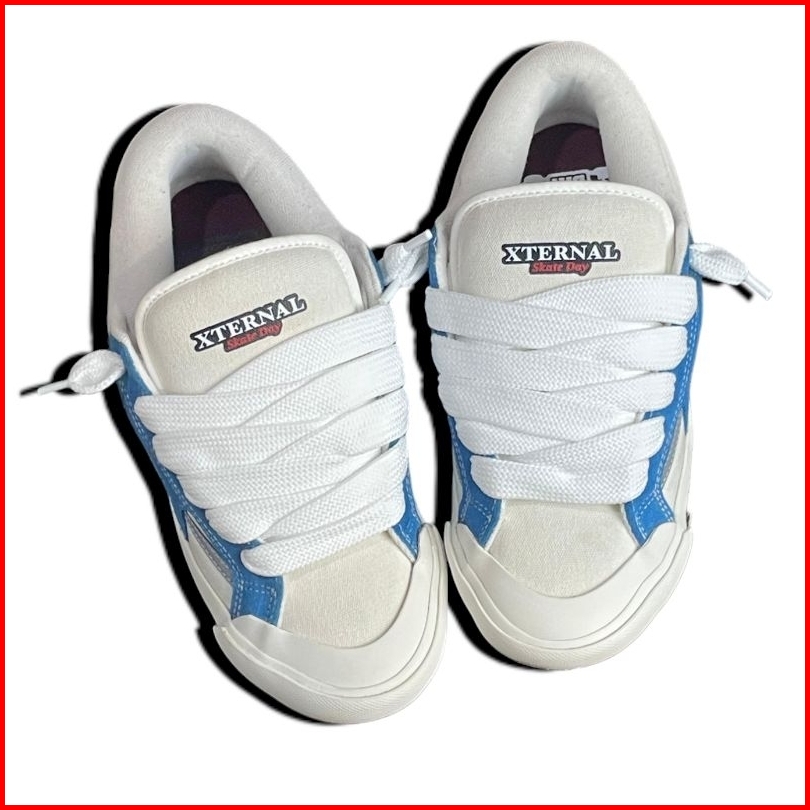 Xternalstepsure - Sepatu Fat Shoes Skateday Gemuk Reflective Biru Putih Sneakers Casual Pria Wanita