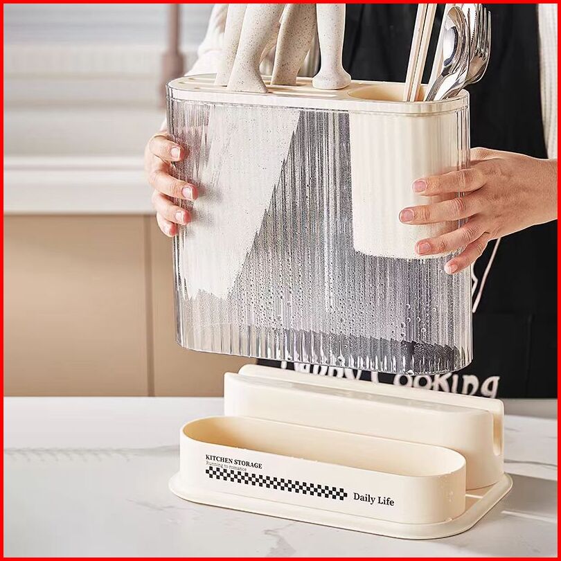 99khome 2in1 Rak Pisau Dapur Tempat Sendok Garpu Multifungsi Tempat Talenan Utensil Drain Holder K1088