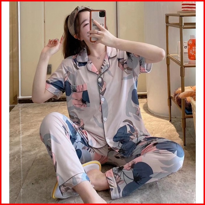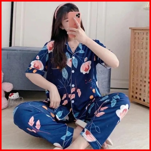 Mp Baju Tidur Wanita Import Set Piyama Perempuan Lengang Pendek Celana Panjang Model Kekinian Premium 004