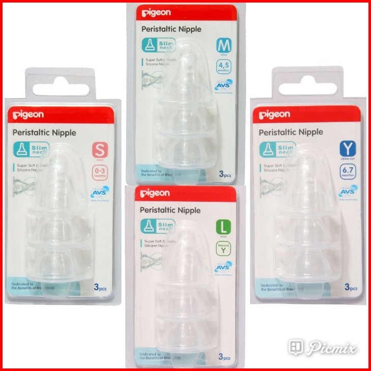 Pigeon Murah Peristaltic Slim Neck Nipple 3pcs Blister Stretchable Nipple Sml Y Dot Lembut