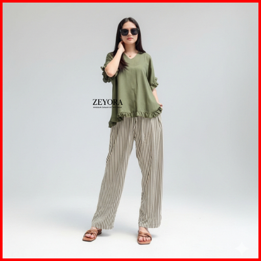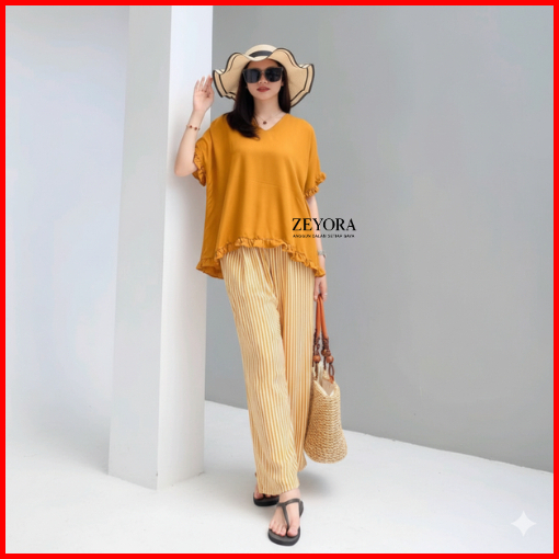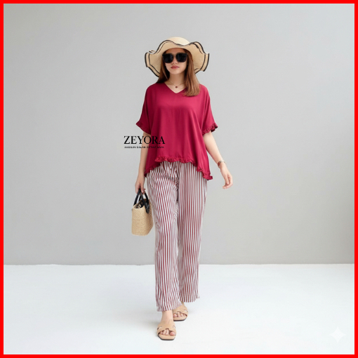 Dera One Set Piyama Wanita Katun Rayon Setelan Tidur Santai Polos Salur Kekinian Baju Set