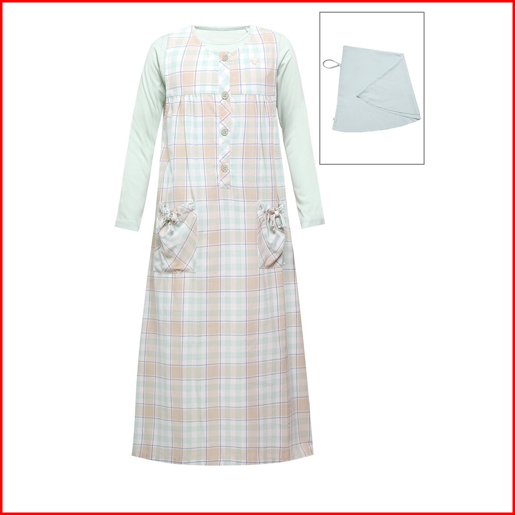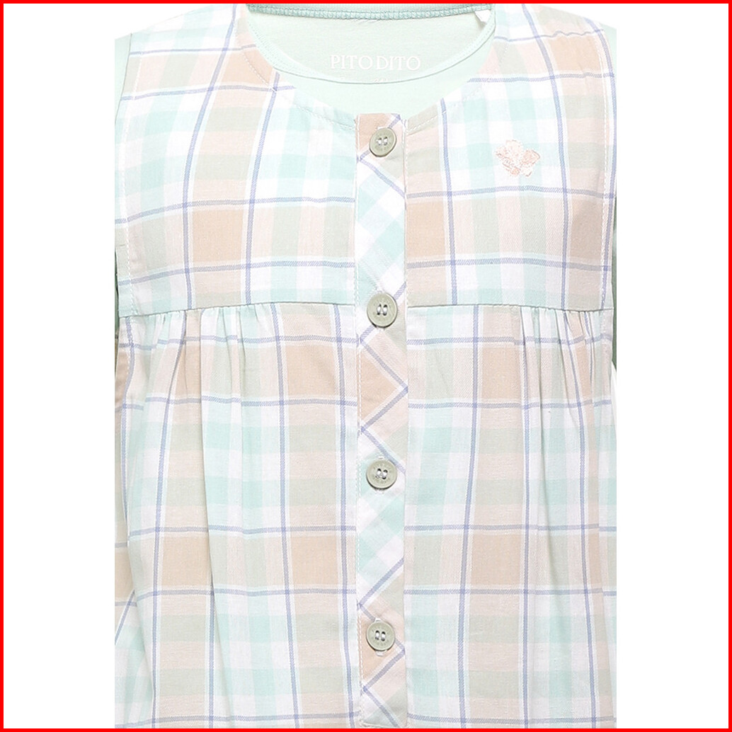 Pito Dito Girl Allepo Gamis Overall Anak Hijau Sage Motif Kotak