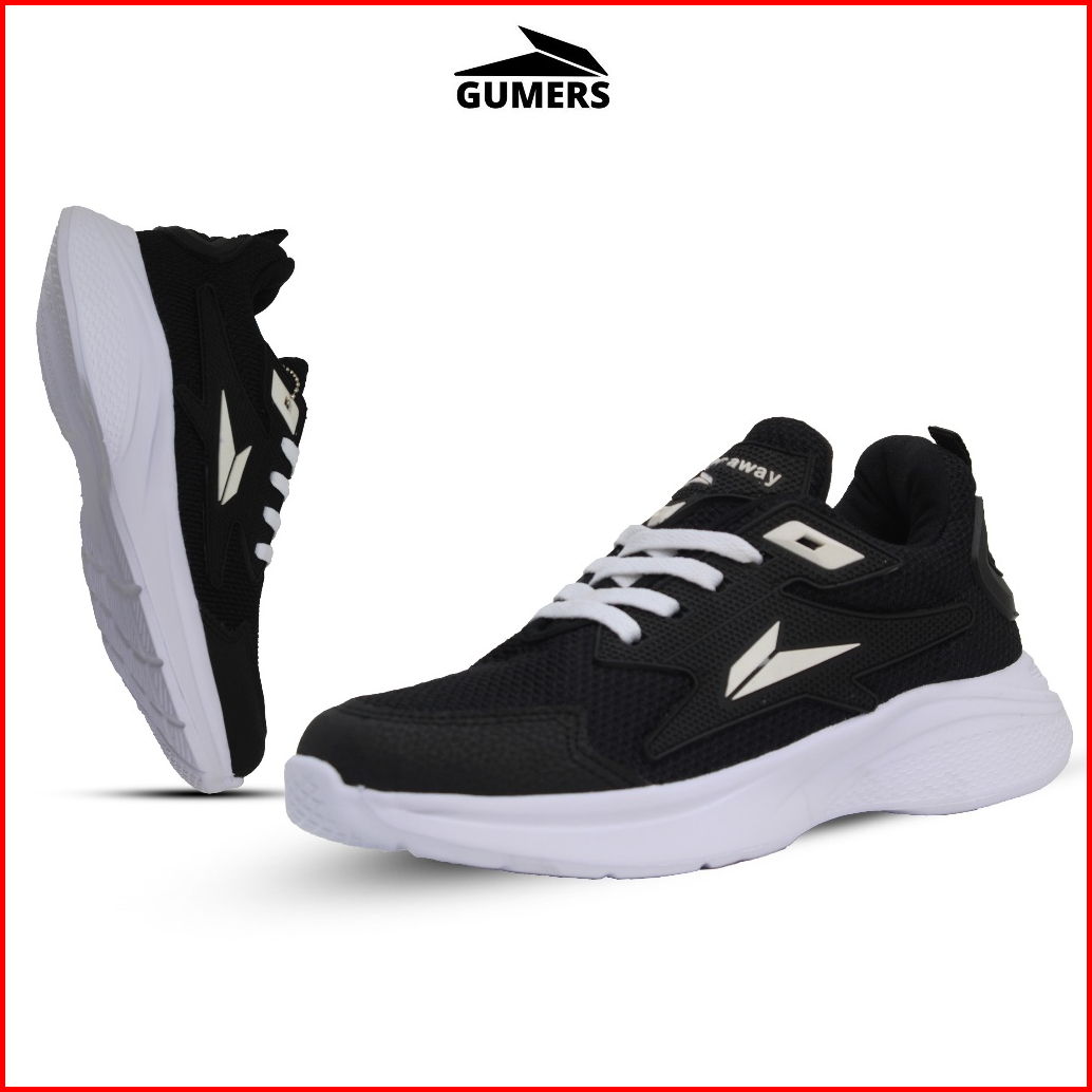 Gumers Wfa Sneakers Pria Wanita Black White Sepatu Sport Running Jogging Sekolah Kerja Santai Senam