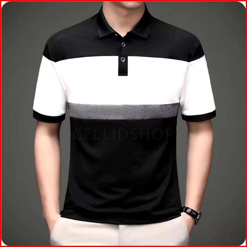 Baju Polo Shirt Pria Lengan Pendek Terbaru Kombinasi Evolt Abu Tua Polos Kerah Kancing Kaos Distro Bahan Katun Tebal