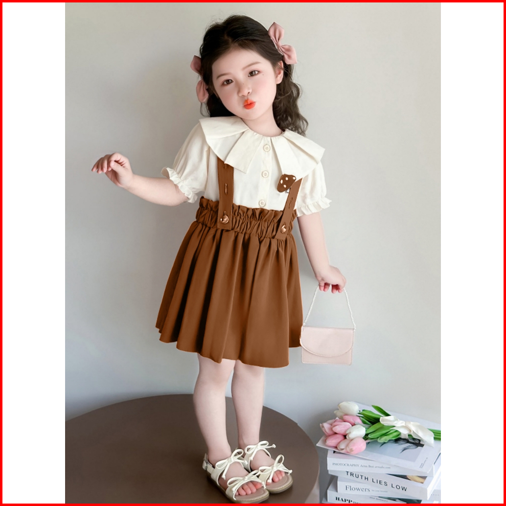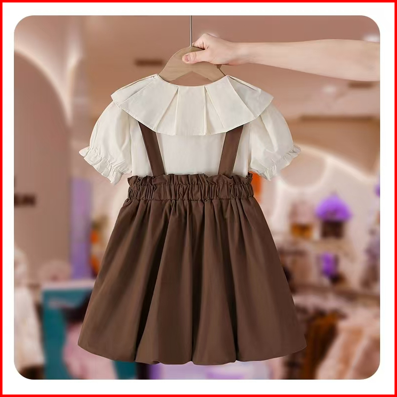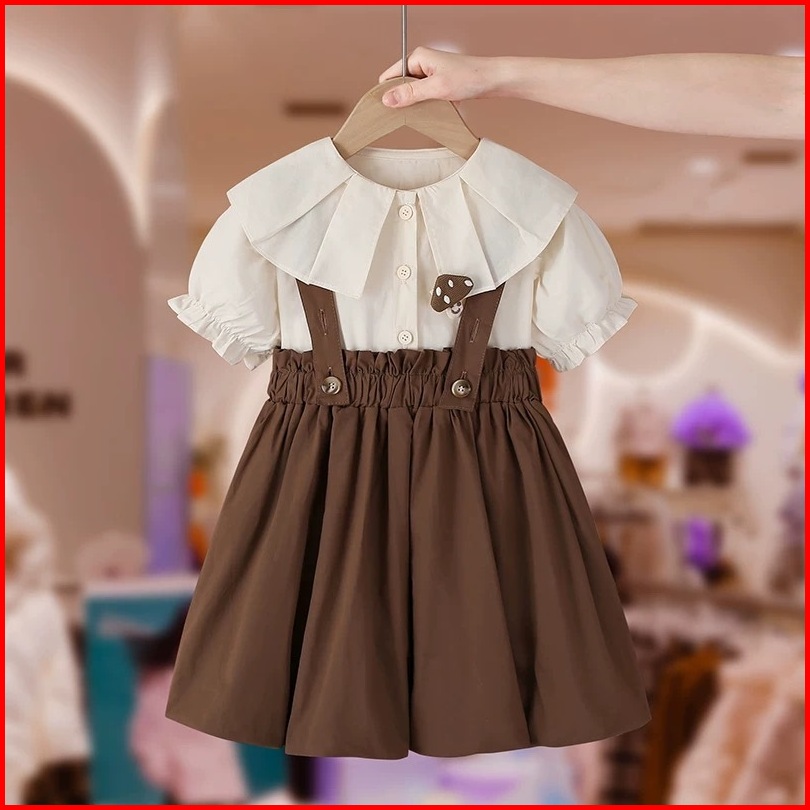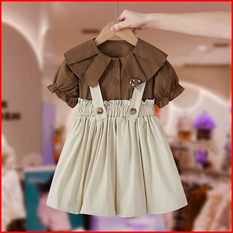 Dress 2in 1 Katun Premium Set Kids Anak Perempuan Model Overall Dress Umur 1-5thn