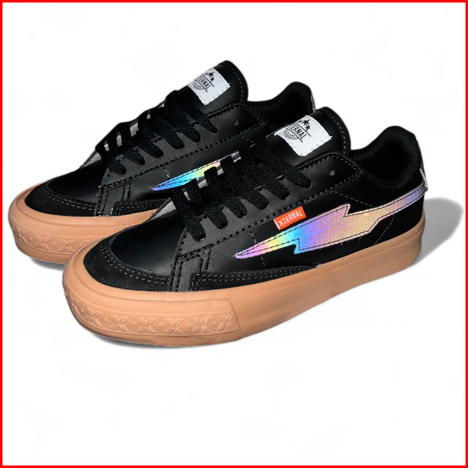 Xternalstepsure - Sepatu Sneakers Zeus Storm Low Black Gum Reflective Rainbow Casual Leather