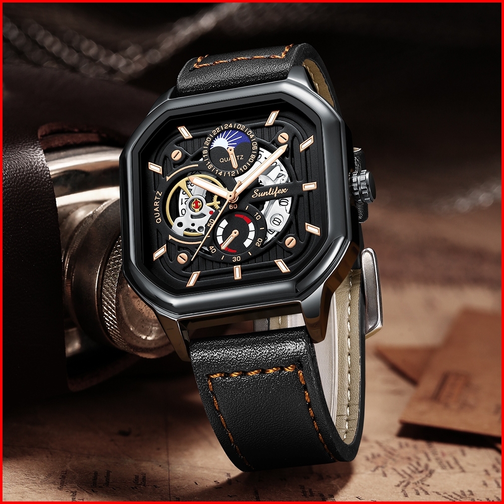 Sunlifex 9110 Jam Tangan Pria Anti Air Tali Kulit Kalender Keren Bisnis Kasual Cowok Original Watch