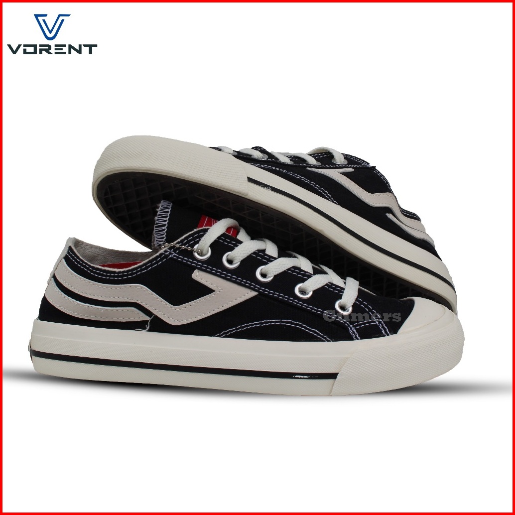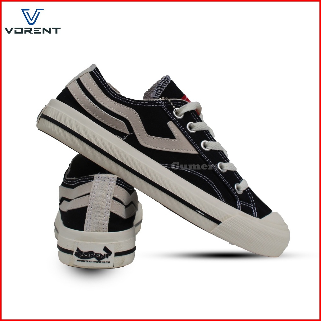 Vorent- Sepatu Pria Dan Wanita Basic Low Black White Sneakers Sekolah Sepatu Kerja Sepatu Skeatboart Sepatu Terbaru Sepa