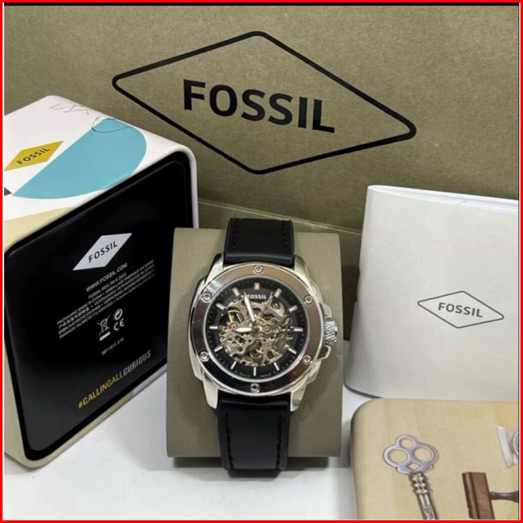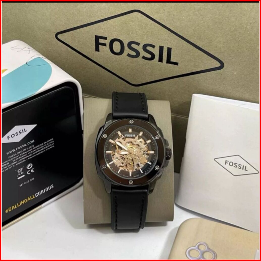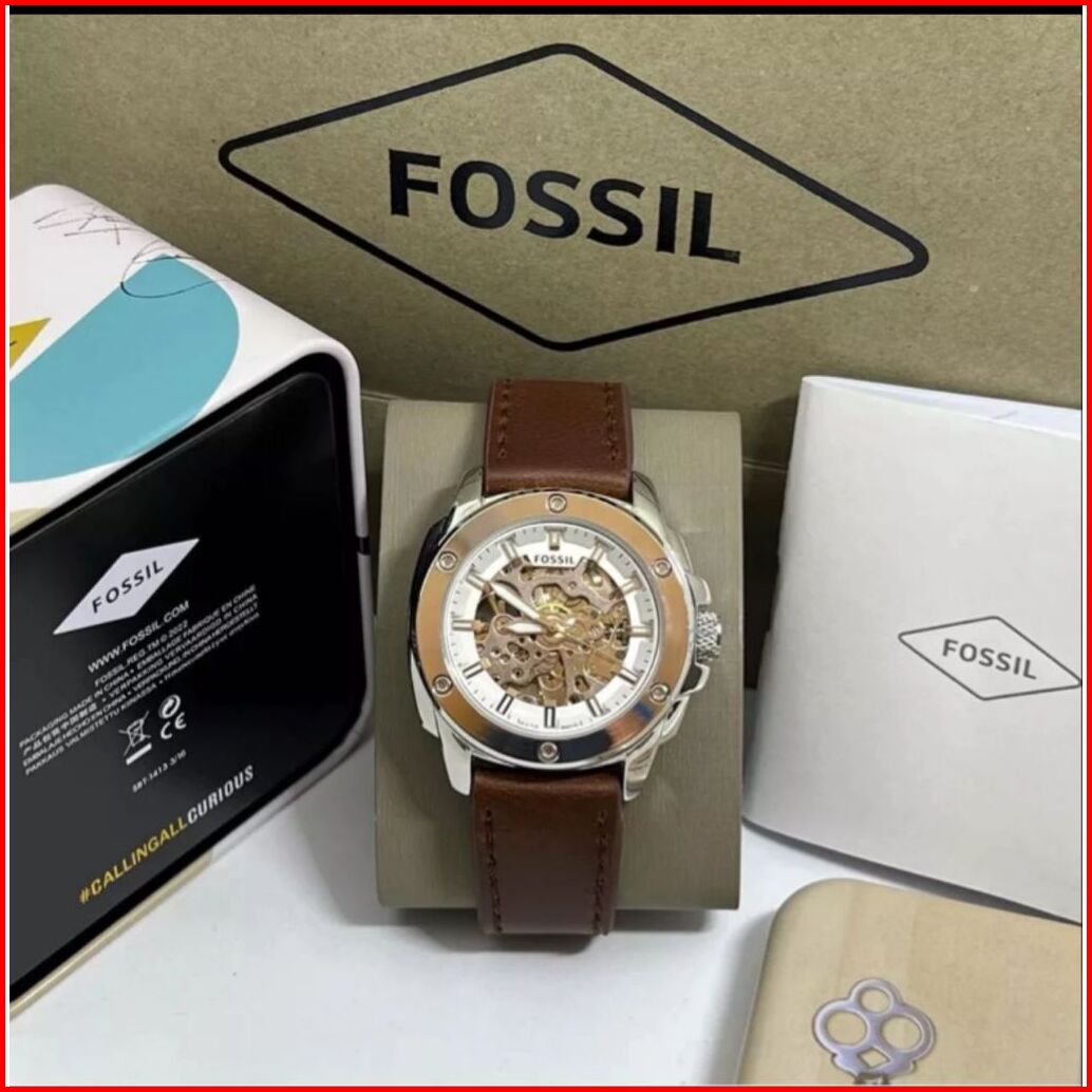 Jam Tangan Pria Fosol Automatic Tali Kulit Body Bulat Knop Gerigi Box Exclusive