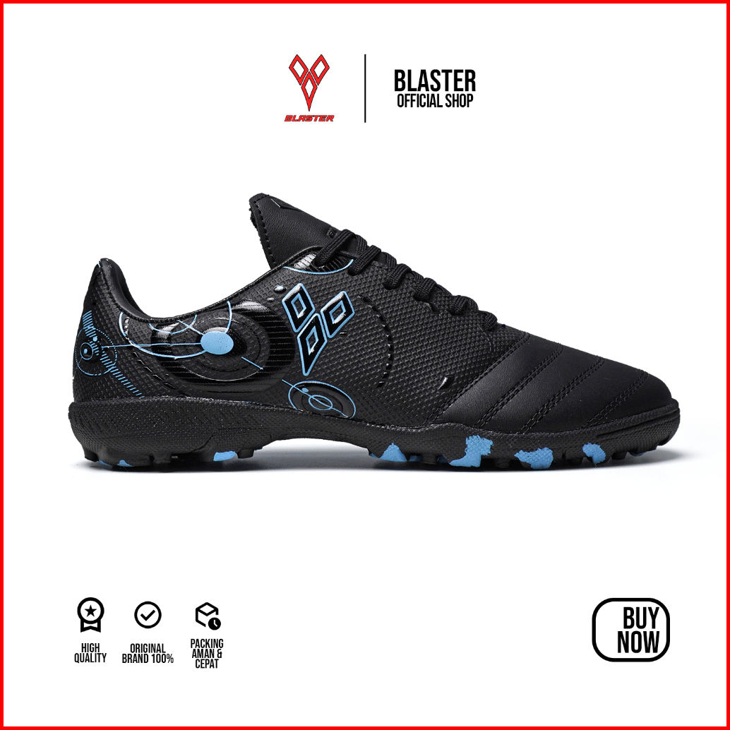 Blaster - Fusion Hitam Biru Sepatu Futsal Anak Dewasa Olahraga Mini Soccer Sol Turf Gerigi