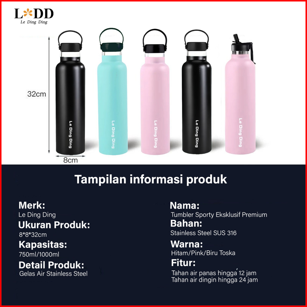 Medan Ready Stock Le Ding Ding Tumbler Stainless Steel 316 1000ml Botol Minum Tahan Panas Dan Dingin Thermos Cup Vacuum
