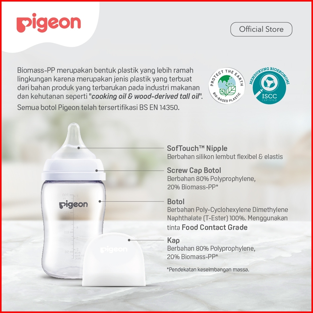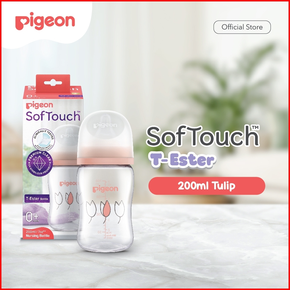 Pigeon Botol T-ester Wide Neck Bpp 200ml With Softouch Nipple Dot Botol Susu Bayi Botol Bening Seperti Kaca Botol Tahan
