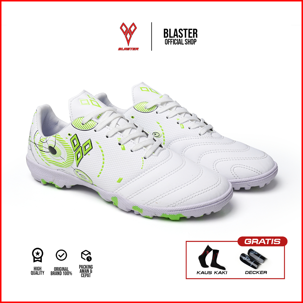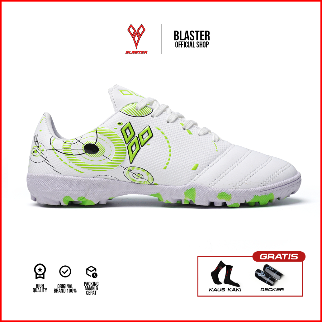 Blaster - Fusion Putih Green Sepatu Futsal Anak Dan Dewasa Olahraga Mini Soccer Sol Turf Gerigi