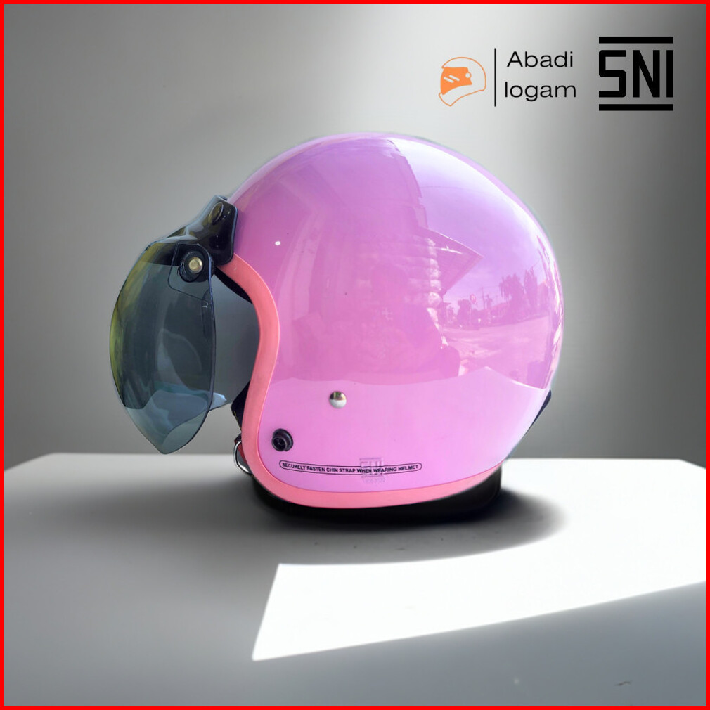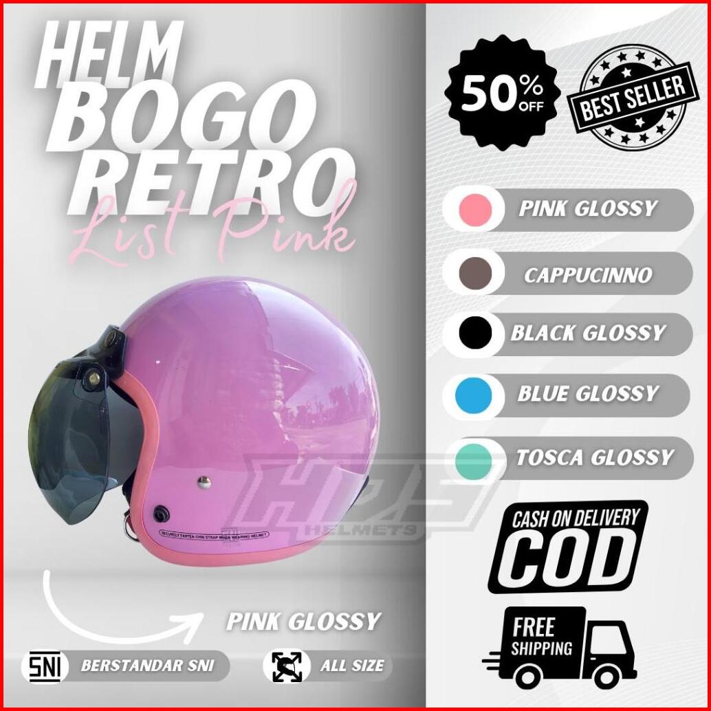 Helm Bogo Dewasa Hds Helmet Retro Solid List Pink Cewek Wanita Hijab Kaca Datar Cembung Motorcycle
