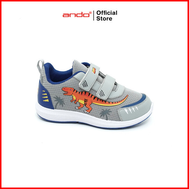 Ando Sepatu Sneakers Dino Land V Anak - Abu-abu Muda Biru Royal Orange