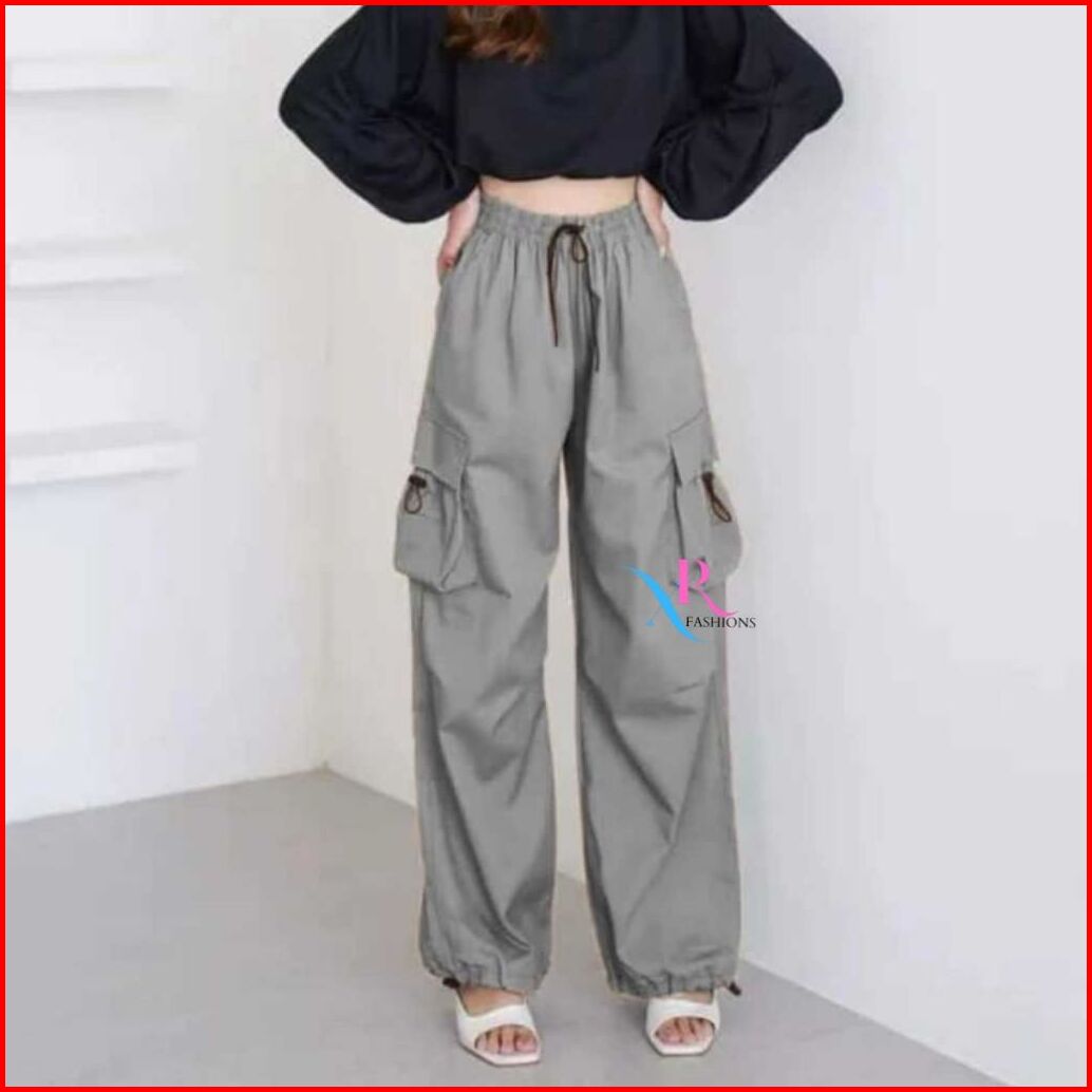 Cargoso - Celana Cargo Wanita Highwaist Loose Pants Trouser Korean Style - Celana Gunung Wanita