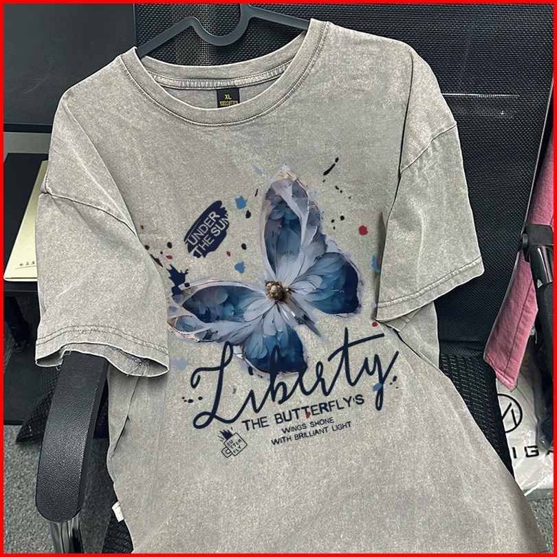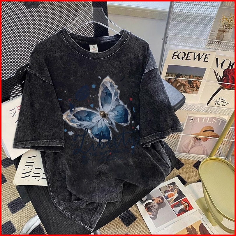 Dsstory Korean Style Kupu-kupu Retro Print Anti-uv50 T-shirt Atasan Wanita Kaos Wanita Korea Top Wanita Atasan Wanita Te