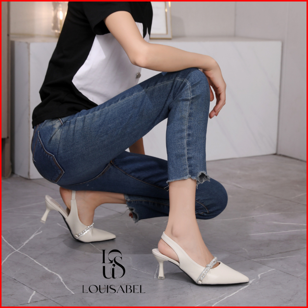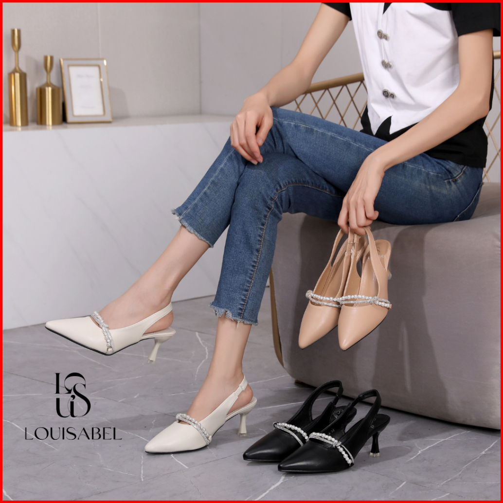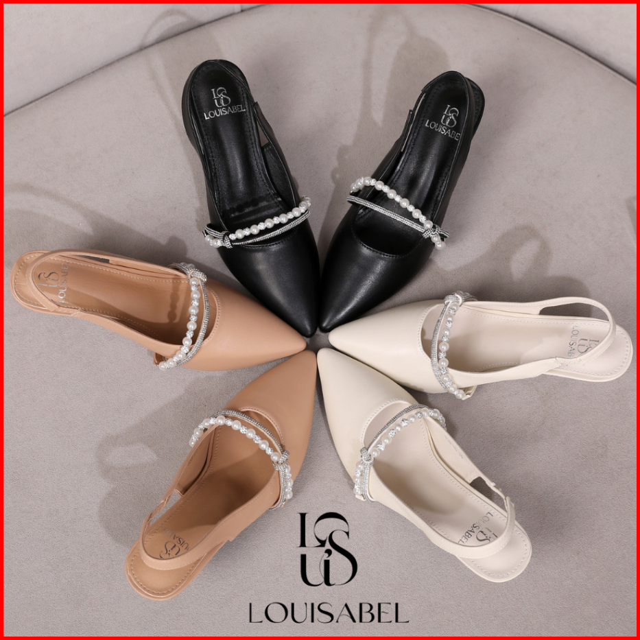 Louisabel Diamora Pearl And Diamond Heels Slingback Sepatu Import Lsb-338-ld