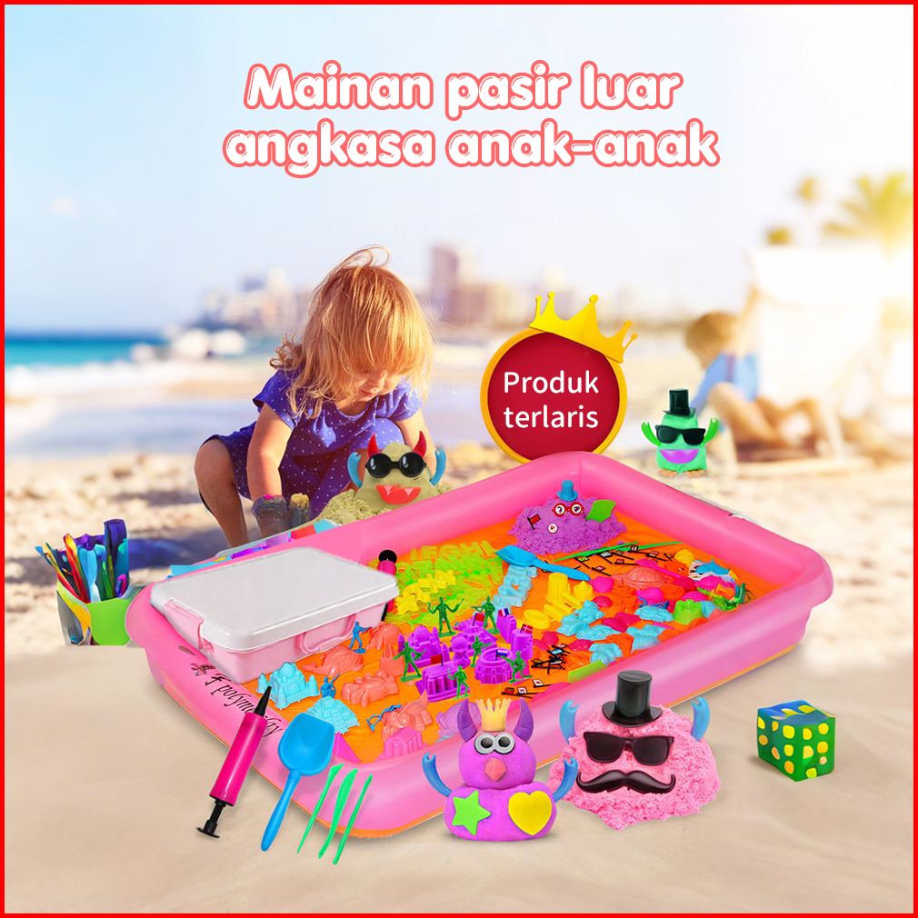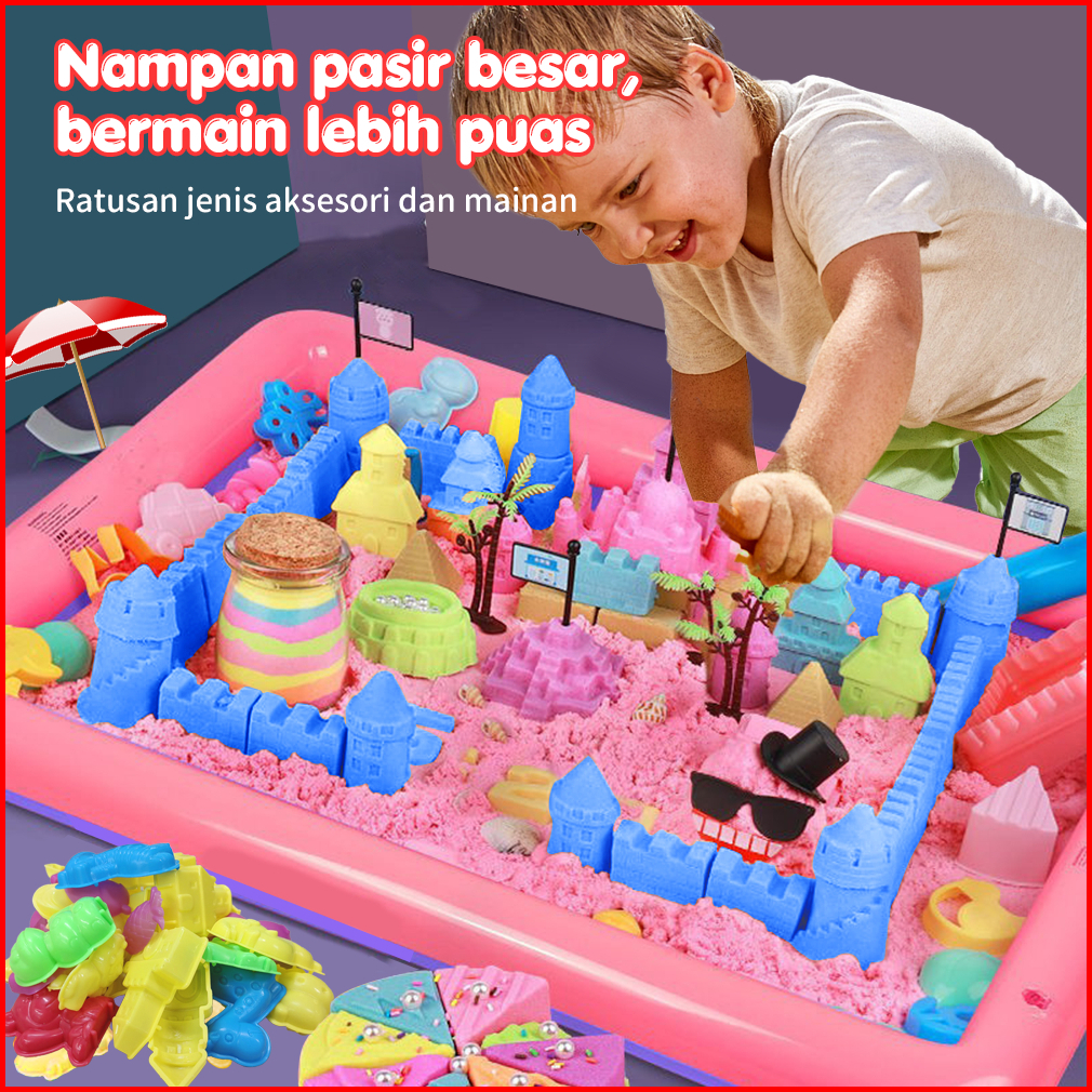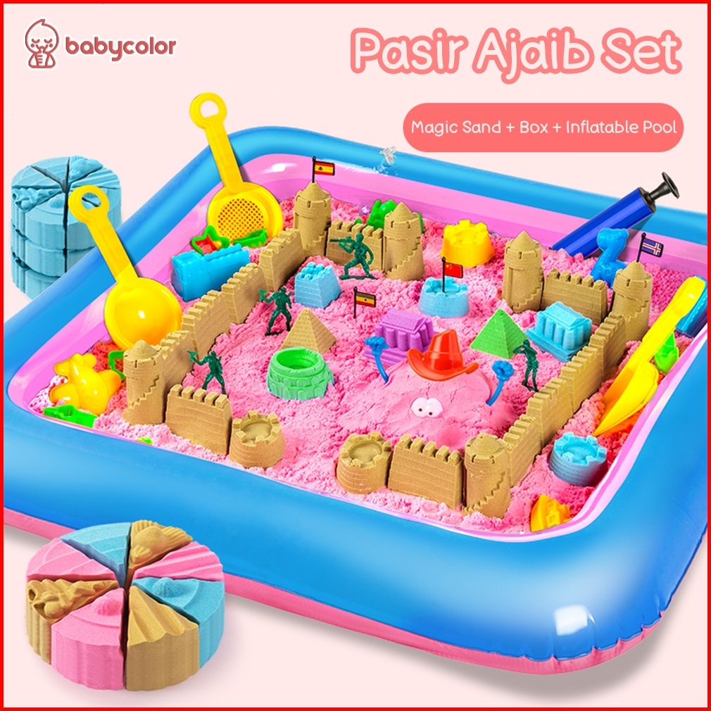 Babycolor 2kg Diy Mainan Pasir Ajaib Set Tanah Liat Plastisin Magic Sand Box Inflatable Pool