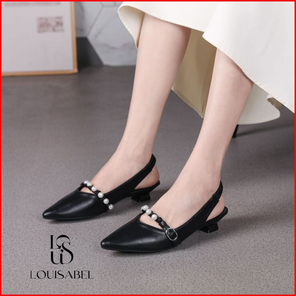 Louisabel Lumi Pearl Block Heels Slingback Sepatu Wanita Import Lsb-722-b2