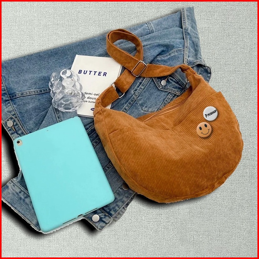 Pushop Tas Selempang Corduroy Pria Wanita Aster - Slingbag Corduroy Uniseks Free 2 Pin Bros Sling Bag Casual Terbaru