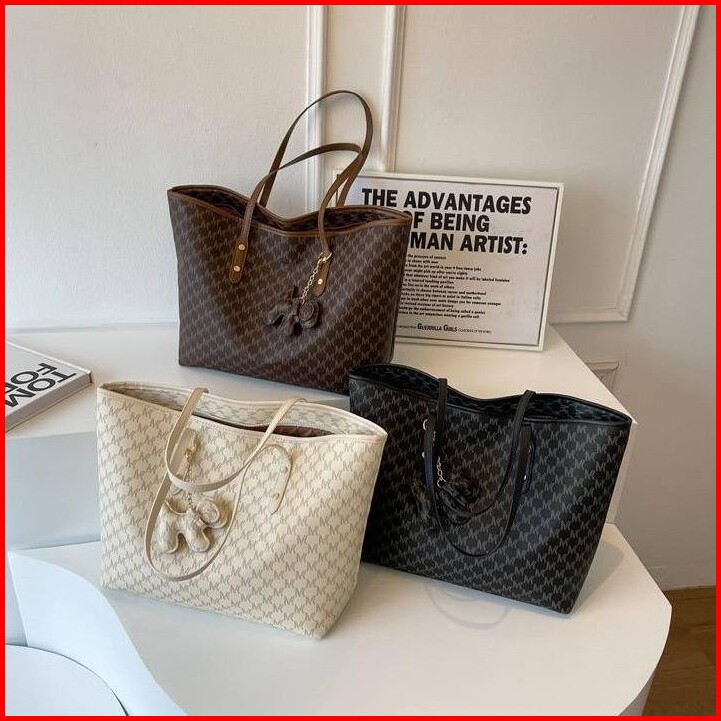 Tote Bag Wanita Tas Kerja Wanita Tas Tote Wanita Kapasitas Besar Shoulderbag Wanita Dengan Aksesoris Gantungan Tgj084