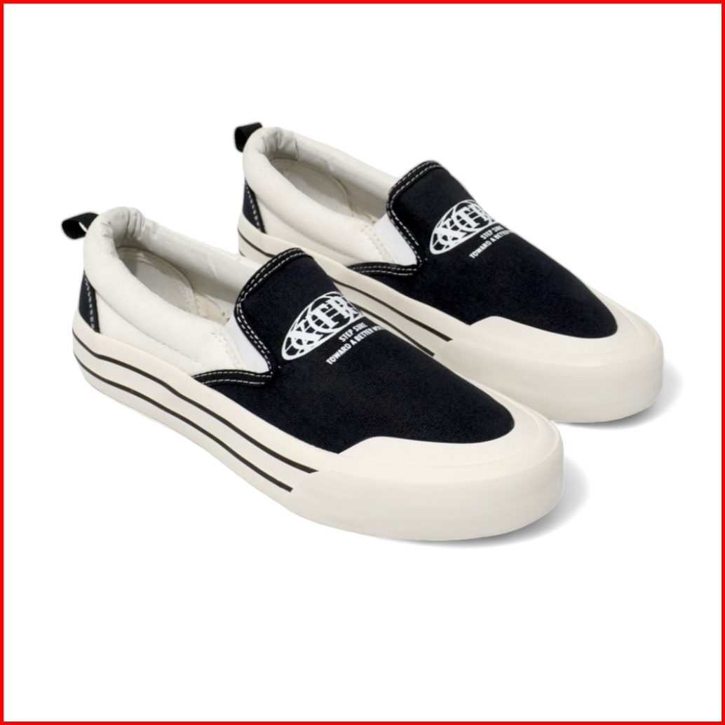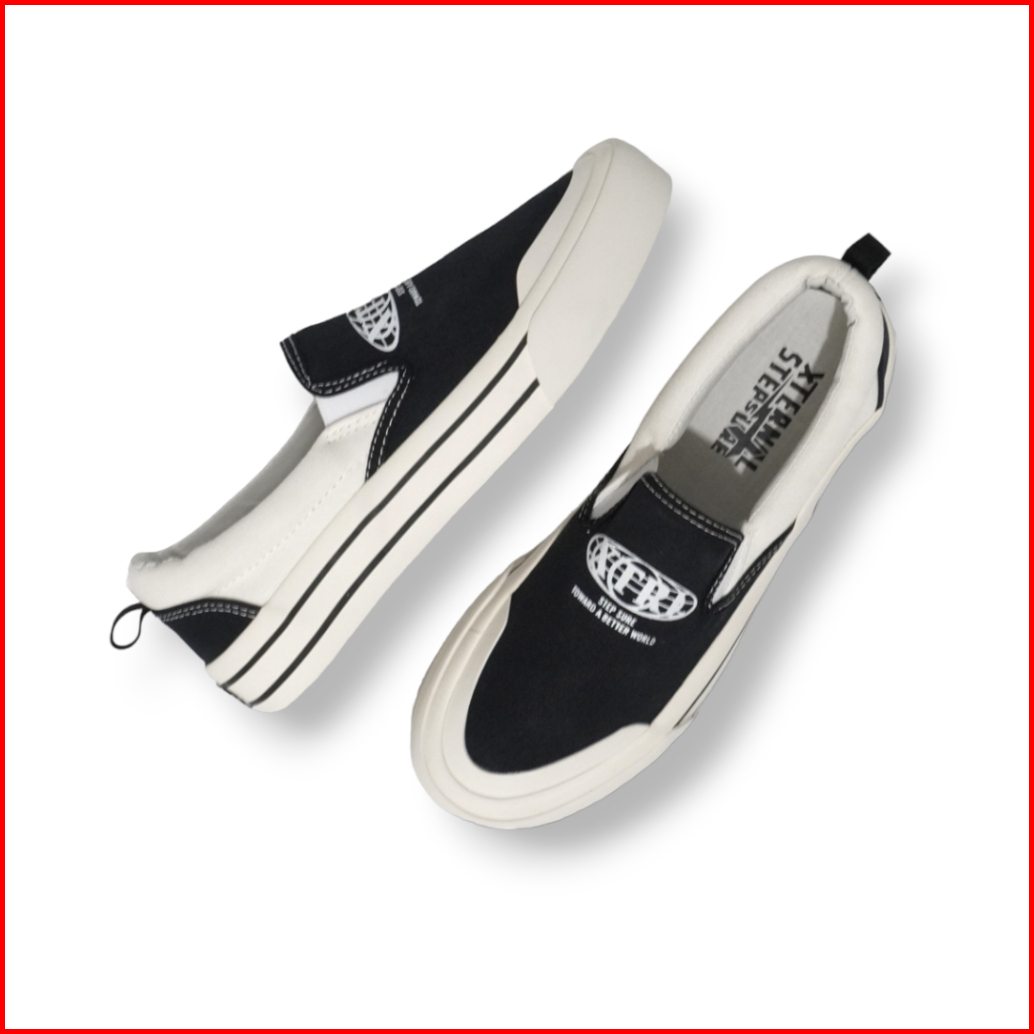 Xternalstepsure - Sepatu Slipon Anastasia Globe Middle White List Hitam Pria Wanita