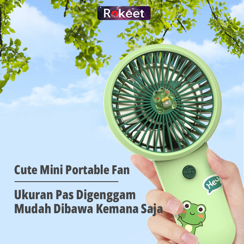 Kipas Angin Rokeet Lipat Mini Portable Karakter Hand Held Free Sticker Lucu