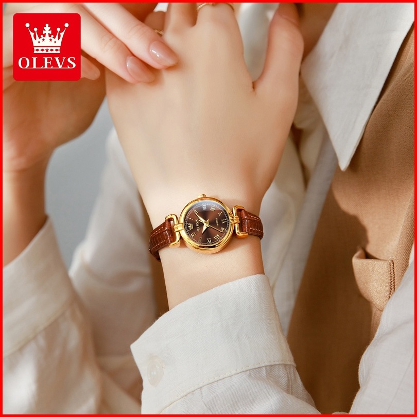 Olevs Jam Tangan Wanita Olevs Tahan Air Kuarsa Mewah Tali Kulit Indah Kecil Bulat Jam Tangan Terbaru Women Watch Modle 5
