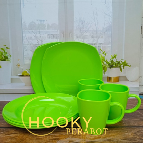 MELAMIN SET HITAM ISI 2 PIRING BULAT 2 PIRING KOTAK 2 CANGKIR HITAM TEBAL TAHAN PANAS