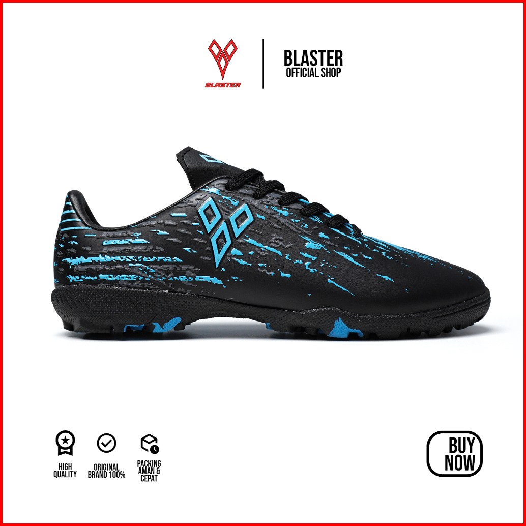 Blaster - Stride Hitam Biru Sepatu Futsal Anak Dewasa Mini Soccer Sol Gerigi Turf Olahraga Outdoor