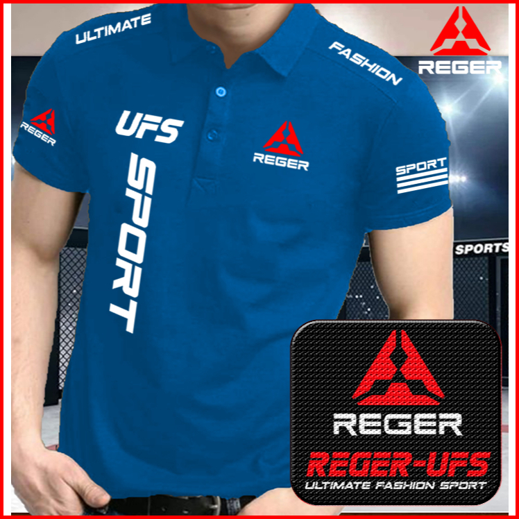 Muda Fashion - Polo Kaos Kerah Reger Ufs Sport Text Miring White Kaos Kerah Distro Baju Pria Laki Laki Wanita Dewasa