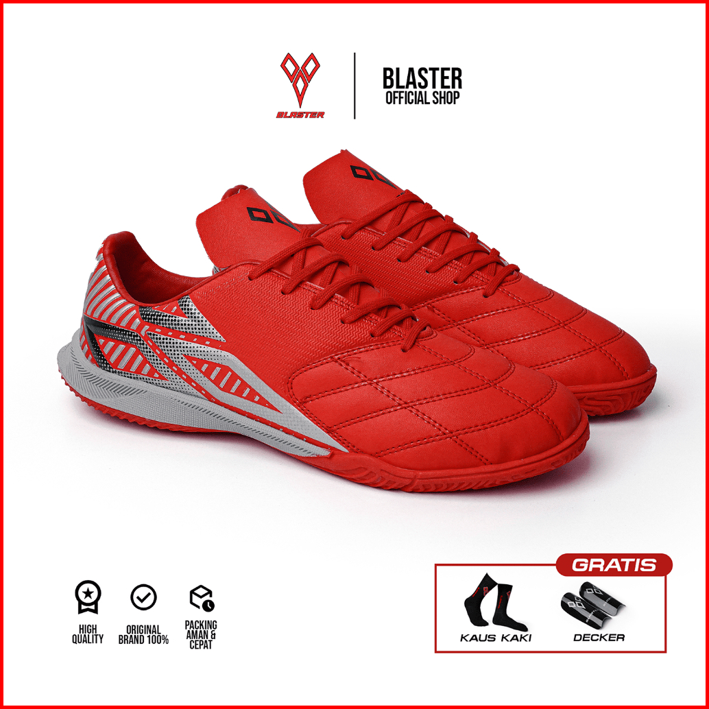 Blaster Futsal Power Play Red Original Sepatu Futsal Pria Olahraga Anti Licin