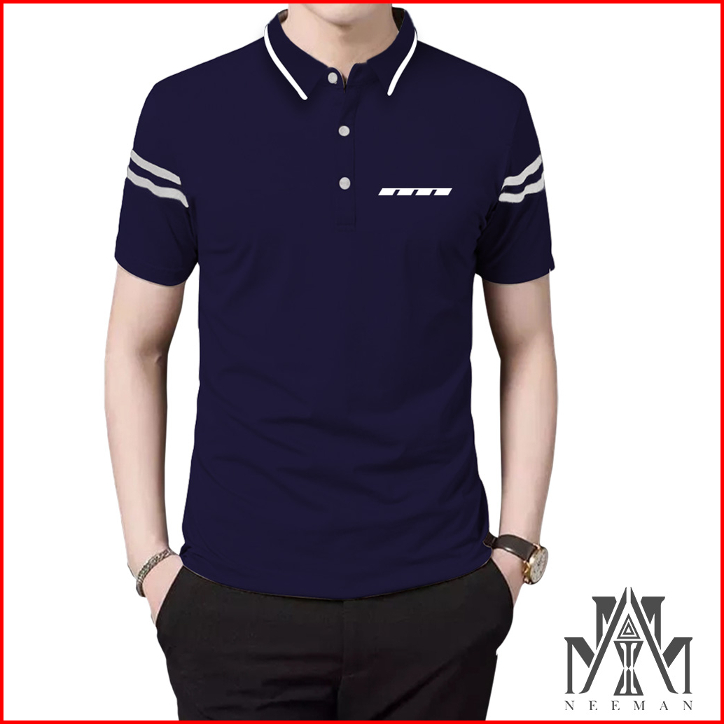 Kaos Pria Polo Saku Zebra Lengan Garis Kerah Daun Pria