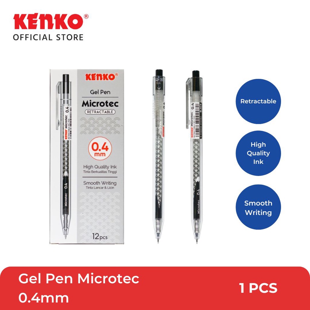 Pulpen Kenko Microtec 0.4Mm Pena Gel Tinta Lancar Kualitas Bagus