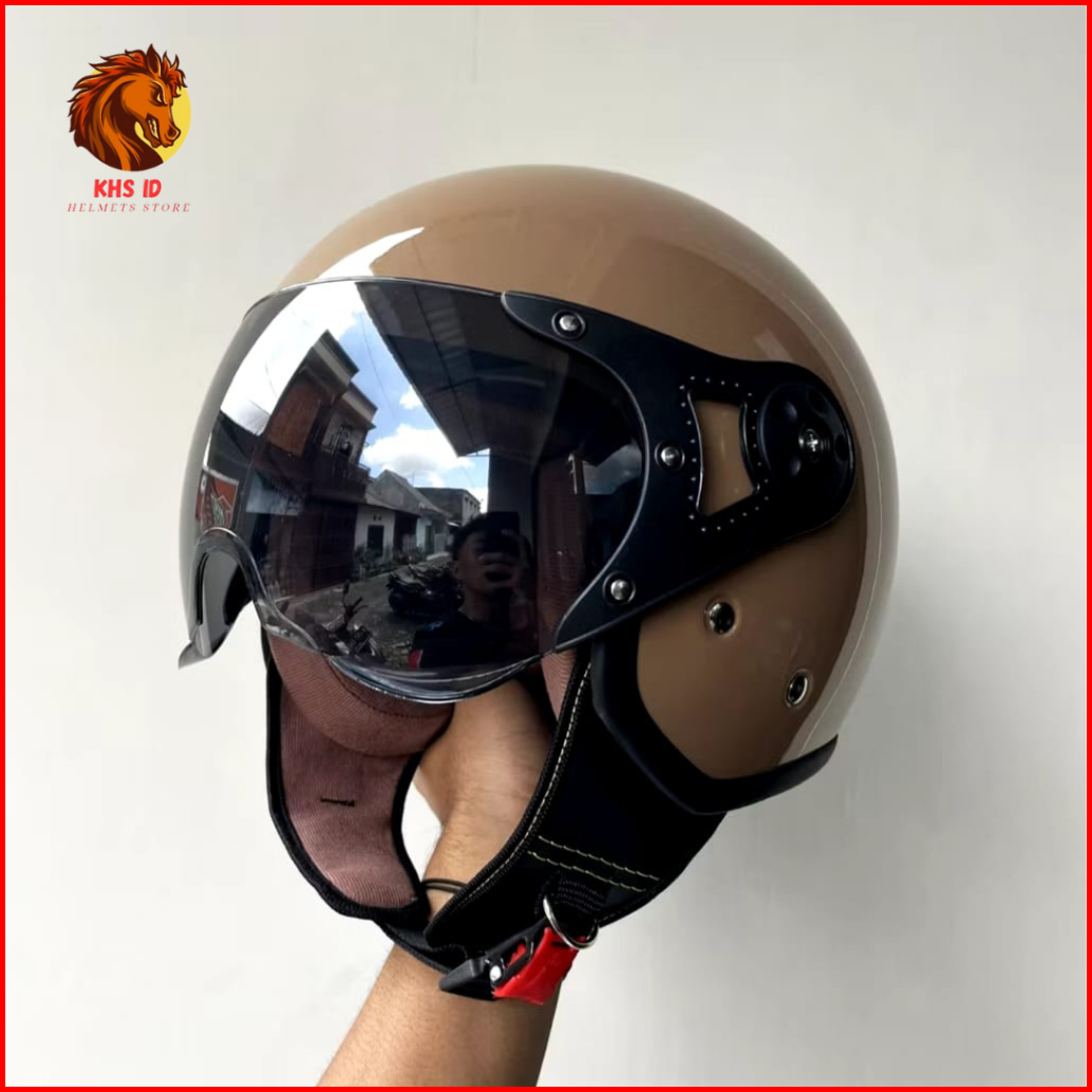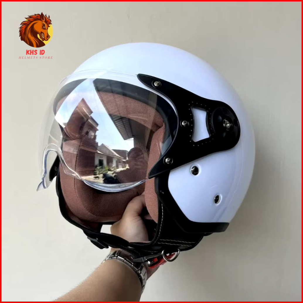 Helm Bogo Retro Pilot Bogo Hijab Original Sni Bahan Premium Kaca Open Face Bening