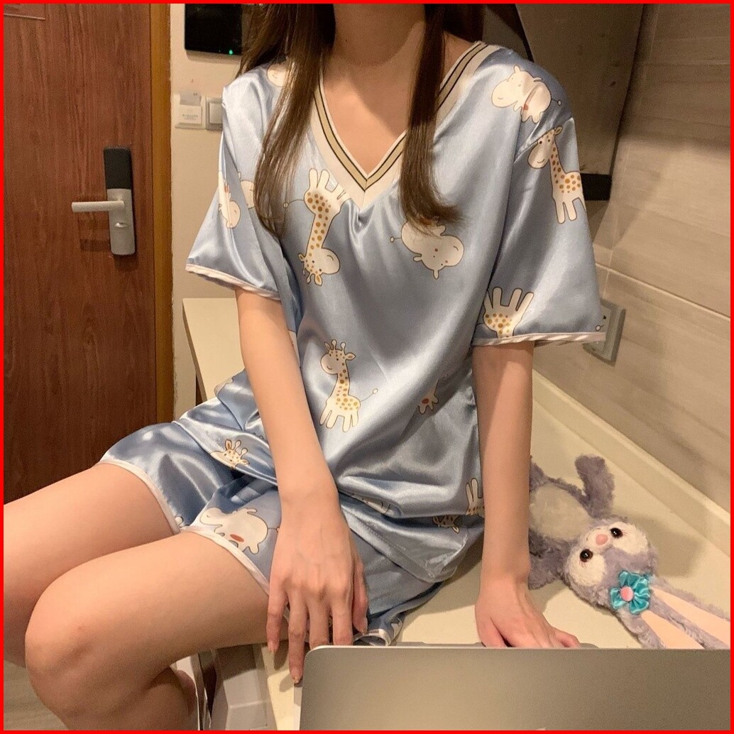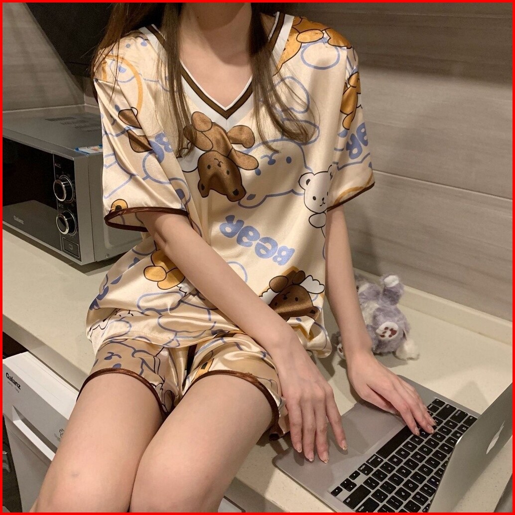 Py006 Set Piyama Sutra Wanita Pakaian Tidur Kaus Longgar Fit To Xxl