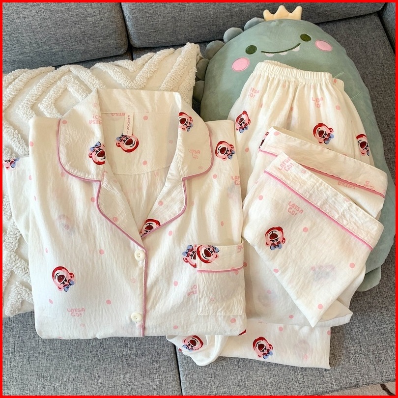 Lnr Shop Piyama Baju Tidur Lengan Celana Panjang Import Full Kancing Hidup Dengan Saku Kerah Leher Bentuk V Motif Vintag