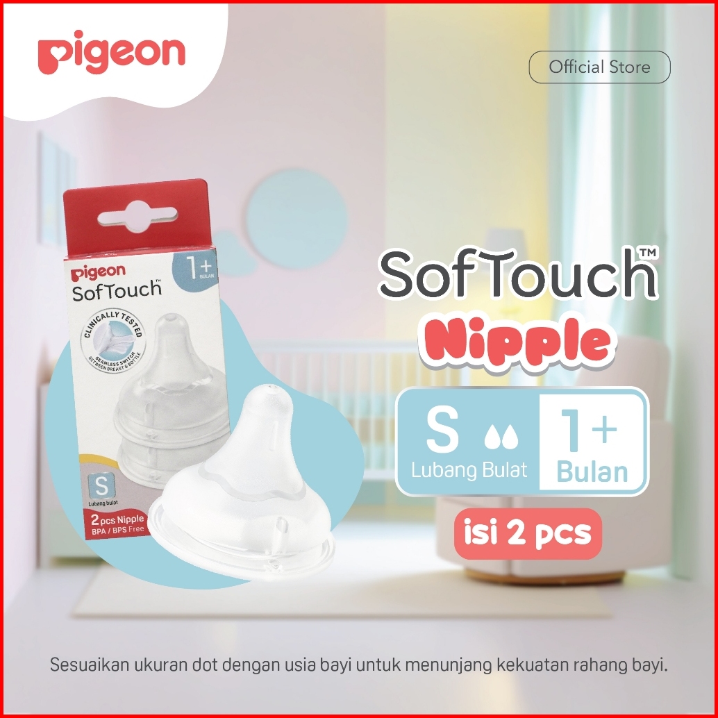 Pigeon Softouch Nipple Dot Wide Neck- 2pcs Box Pilih Size Dot Seperti Payudara Ibu Elastis Lembut Anti Kolik Lubang Avs