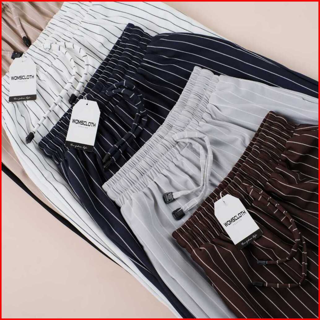Womscloth - Everyday Pants - Stripe Pants Bangkok - Celana Panjang Wanita Baggy Kantor Kuliah Motif Garis Kulot Pinstrip